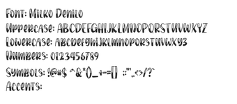 Milko Denilo é uma família de fontes que combina charme lúdico com um toque artesanal distinto. Com estilos variados que vão de traços ousados e semelhantes a pincel a contornos texturizados, a tipografia oferece uma paleta dinâmica que é moderna e ao mesmo tempo vintage. As formas arredondadas e grossas das letras, suavizadas por irregularidades sutis, transmitem calor e criatividade, tornando-a ideal para logotipos impactantes, embalagens vibrantes e designs de pôster divertidos.